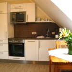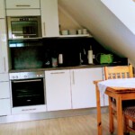 Neben dem großen Schlafzimmer mit Doppelbett finden Sie ein gepflegtes Bad mit ebenerdiger Dusche und eine geräumige Wohnküche mit einem Koch-Ceranfeld mit Backofen, Kühlschrank mit Gefrierfach, Wasserkocher, Toaster, einer Mikrowelle, Kaffeemaschine und vieles mehr.