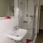 • Bad mit fast ebenerdiger Dusche inklusive WC und Waschbecken.