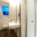 Den Balkon mit Dachüberstand, wo Teakholzmöbel zum Verweilen einladen, erreichen Sie über den Wohnraum und dem Elternschlafzimmer. Im zweiten Schlafzimmer sowie im Bad finden Sie ein Dachfenster mit automatisch schließenden Jalousien, so dass man hier auch mittags im Dunkeln zur Ruhe kommen kann. Das Badezimmer mit fast ebenerdiger Dusche wird Ihren Ansprüchen und Wünschen sicherlich gerecht werden.